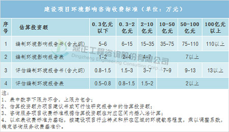 環境影響咨詢取費可參考《建設項目環境影響評價收費標準》(計價格〔2002〕125號),以估算投資額為計費基數,根據建設項目不同的性質和內容,采取按估算投資額分檔定額方式計費。