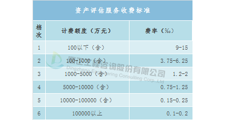 評價費用=(評價費用上限—評價費用下限)×(總投資額—投資區間下限)/(投資區間上限—投資區間下限)+評價費用下限