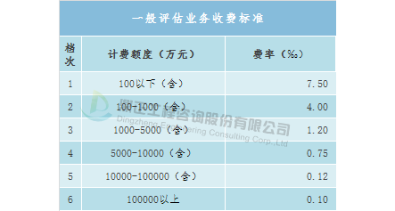 (1)一般評估業務收費標準